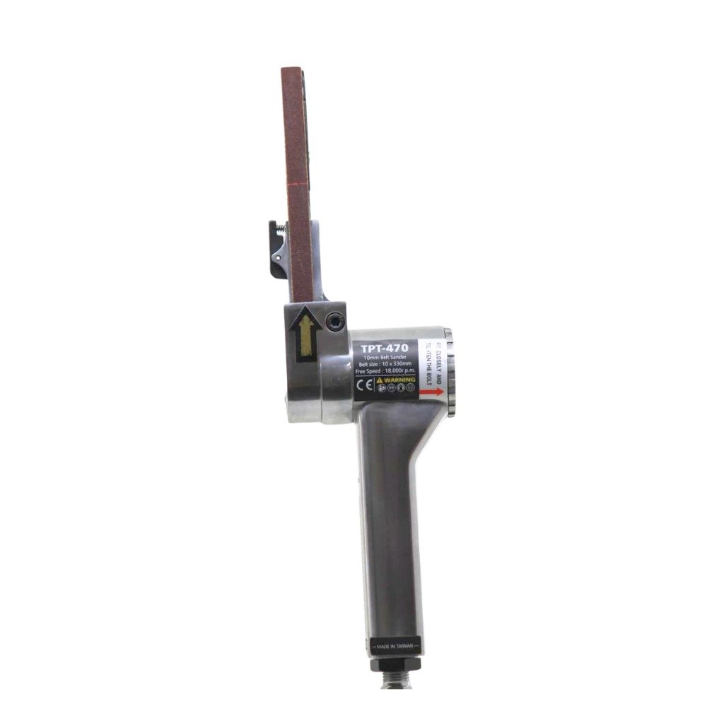 Designed to maximize productivity, the PT-470 boasts an impressive free speed of 18,000 RPM, delivering rapid results with a belt size of 10 × 330 mm. This combination ensures a smooth, even sanding experience, ideal for professionals who demand consistency in their work. The tool operates efficiently with an average air consumption of just 4 cfm (113 L/min), making it energy-efficient without sacrificing performance.